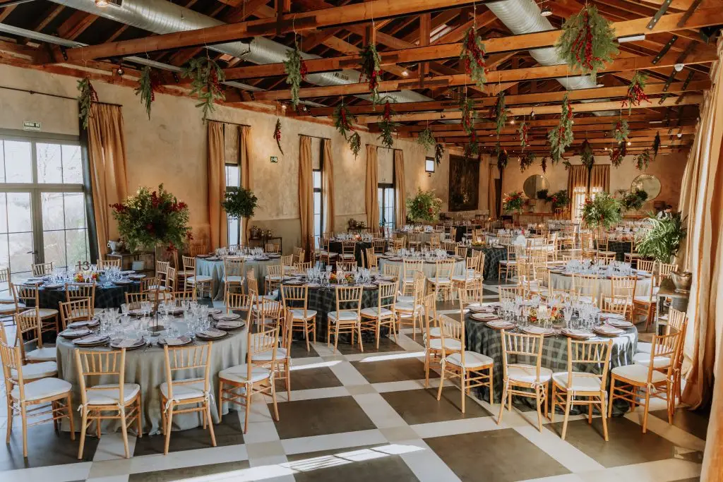 La interiorista Isabel López-Quesada ha sabido capturar la esencia del entorno natural y reinterpretarla con su lenguaje sofisticado: líneas limpias, materiales nobles, equilibrio entre tradición y modernidad. A su vez, los jardines —diseñados por Fernando Martos— aportan frescura, estructura y un toque botánico muy cuidado, perfecto para ceremonias al aire libre o cócteles entre parterres de inspiración inglesa.